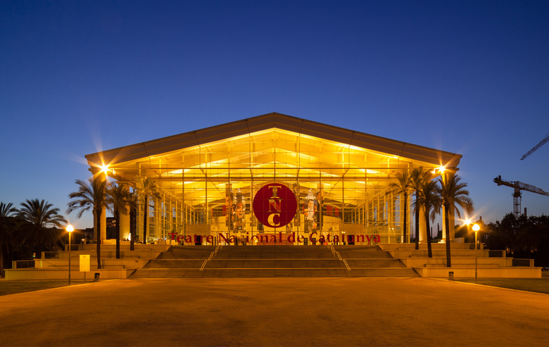 El Teatre Nacional de Catalunya es uno de los mayores hitos culturales de Barcelona. Este, junto al auditorio, responde a la necesidad de descentralizar los grandes equipamientos culturales para vitalizar la periferia de la ciudad. El edificio principal tiene una doble piel: la exterior compuesta por muro-cortina y la interior de hormigón arquitectónico. El vestíbulo, la gran sala y el escenario con sus instalaciones están cubiertos por un único techo metálico a dos aguas, colocado sobre grandes cerchas metálicas tridimensionales y sostenido por columnas de hormigón. El vestíbulo, jardín interior transparente, alberga las taquillas, el bar, las guardarropías, los accesos a la sala experimental, situada en la planta inferior. Un ascensor de cristal y dos escaleras mecánicas conducen al restaurante, desde el cual la vista abarca la totalidad del vestíbulo y el exterior del edificio. La gran sala, corazón del teatro, es de tipo italiano: una platea sin balcones con pendiente muy pronunciada que ofrece la máxima visibilidad. La caja de escena, de 40 metros de altura, permite mover los decorados horizontal o verticalmente, según las exigencias de la puesta en escena. Dos volúmenes situados a cada lado del escenario albergan camerinos y locales técnicos, y el volumen posterior de la caja de escena aloja las oficinas y la sala de ensayos. La diferencia de tratamiento de las dos salas vuelve a proponer el juego entre lo clásico y lo moderno: mientras en la gran sala se han empleado el mármol griego y la madera de sicómoro, la sala experimental presenta unos acabados más rústicos, andamiajes de mecano tubo y gradas móviles que permiten montar rápidamente cualquier tipo de puesta en escena. En el segundo edificio se encuentran los almacenes y los talleres de producción de decorados.