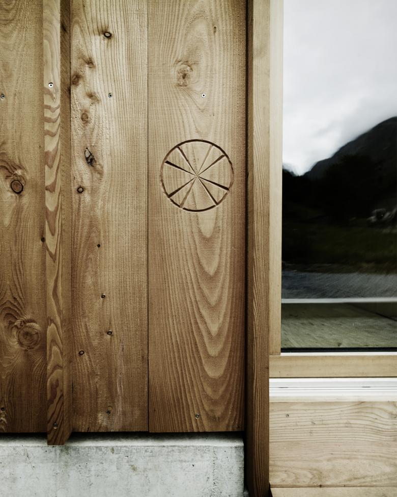 Die Innenwände des Strickbaus wurden offengelegt, während die Aussenwände auf der Innenseite gedämmt und neu verkleidet wurden. Bekleidende Elemente differenzieren sich von der Tragstruktur indem diese mit Fugen an die Decken und Böden anschliessen. Die Bekleidungen sind Anlehnungen an die ehemaligen Brusttäfer und trotzdem eigenständige Interpretationen. Alt und Neu kontrastrieren sich und stehen sich zugleich respektvoll gegenüber. Dadurch erhält jedes Bauteil die notwendige Präsenz und verschmelzen zu einem ausdruckstarken Gesamtprojekt von hoher architektonischen und räumlichen Qualität.