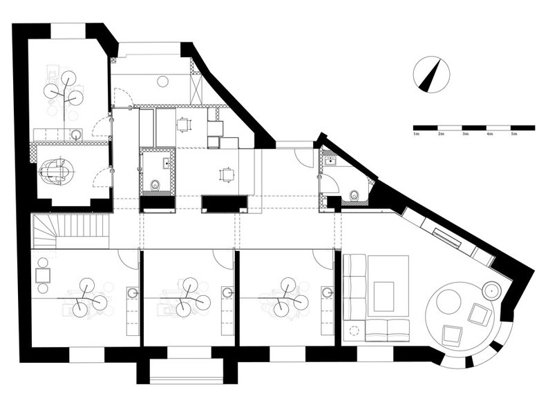 Die Praxis Weissraum zeigt eine klare moderne Innenarchitektur, die gleichzeitig natürlich und warm wirkt und die historische Bausubstanz auf besondere Weise berücksichtigt. Obwohl die Räume scheinbar durchsichtig erscheinen, wird Wert auf höchste Diskretion gelegt und so möglichen Schwellenängsten der Patienten entgegengewirkt.