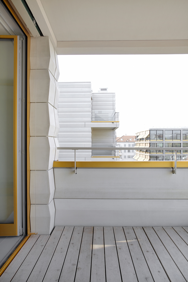 Der Baukörper spannt die gesamte Parzellentiefe zwischen Badenerstrasse und Stadtpark Hardau auf. Mit der Bildung zweier Hauptfassaden wird der Ausrichtung auf diese beiden öffentlichen Räume Rechnung getragen. Die vertikale Gliederung der auf dem durchgehenden Sockelgeschoss aufgesetzten Volumen nimmt den Rhythmus der typischen Erkeranbauten auf und wird mit Attikarücksprüngen zusätzlich überhöht.