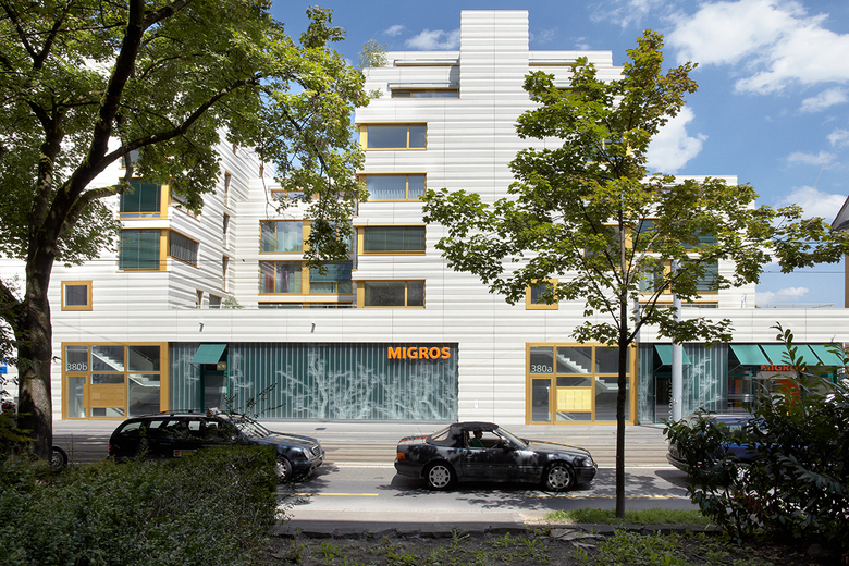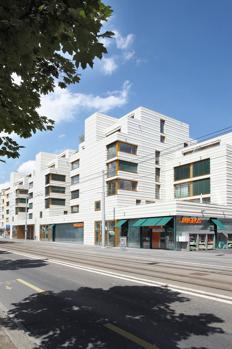 Das ab dem Sockel als sechsgeschossiger Holzbau ausgeführte Wohn- und Geschäftshaus an der Badenerstrasse ist in zweifacher Hinsicht wegweisend. Einerseits als erstes in der Schweiz, nach den Richtlinien der 2000-Watt Gesellschaft errichtetes Gebäude, andererseits als innerstädtischer, struktureller Massivholzbau, der die Bautradition Zürcher Altstadthäuser neu interpretiert.