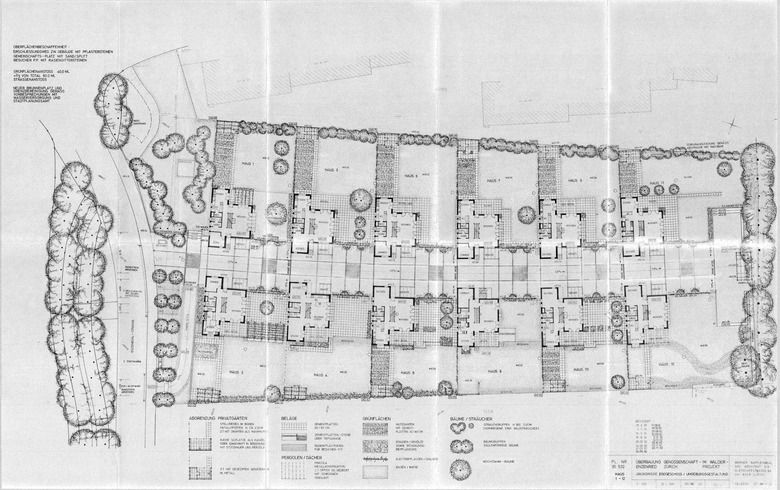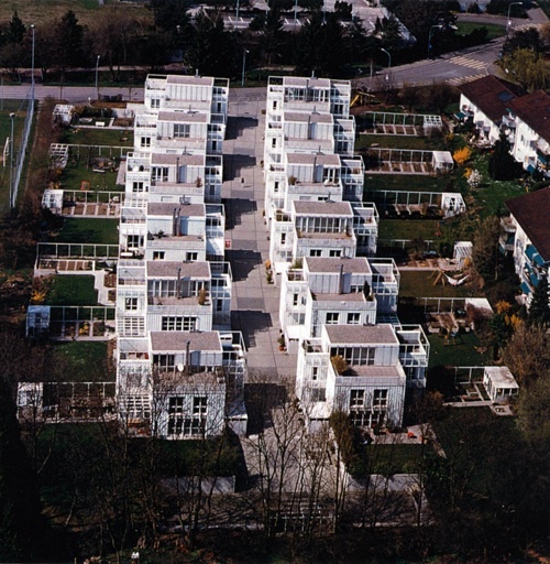 Siedlung am Stadtrand von Zürich zwischen Enzenbühlstrasse und der Grenze Zollikon als in sich geschlossene Einheit. Gemeinschaftsbereiche sind die Wohnstrassse, der Kinderspielplatz, der Gemeinschaftsplatz mit Pergola. Individuelle Bereiche sind die einzelnen Häuser mit privaten Gärten.