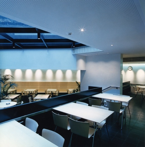 Erweiterung in Glasmetallkonstruktion durch Einbezug eines Teilbereiches des Innenhofes zur Schaffung eines lichtdurchfluteten, zentralen und übersichtlichen Raumes hoher Aufenthaltsqualität.
