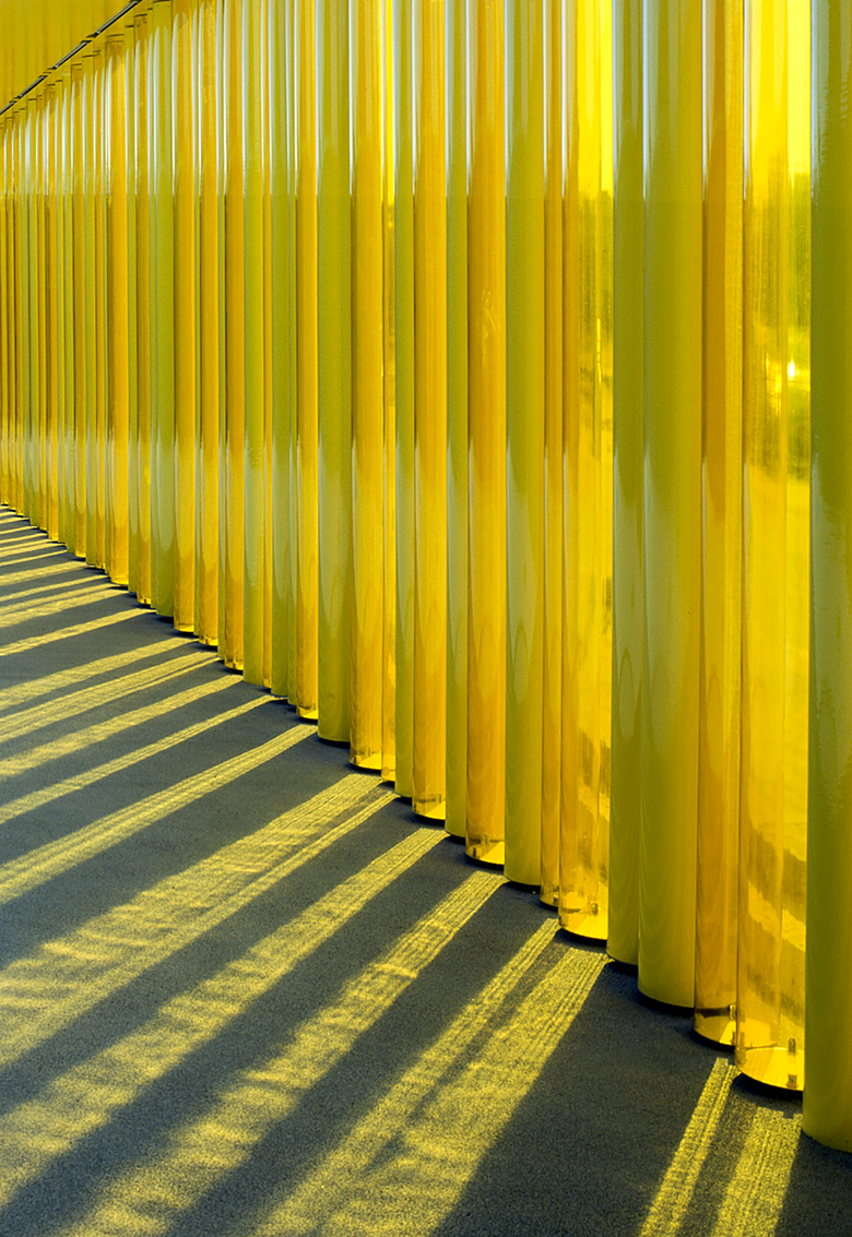 From the classrooms it’s possible to see the courtyard, with it’s steel and Plexiglas tubes, and the mountains beyond.