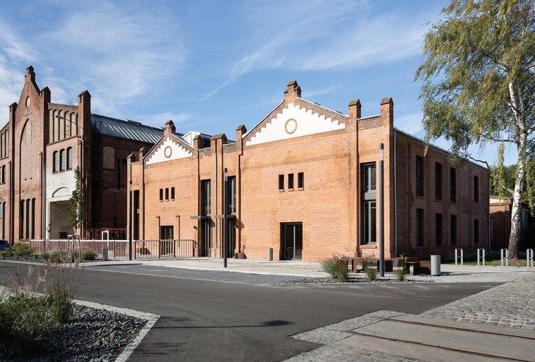 Es ist die ehemalige denkmalgeschützte Industriehalle der Härterei des Lokomotivbau-Unternehmens, der Berliner Maschinenbau-Aktiengesellschaft (BMAG), vormals „L. Schwartzkopff Berlin“, die in den 1950er Jahren zu einem zweigeschossigen Mehrzweckgebäude umgebaut wurde.