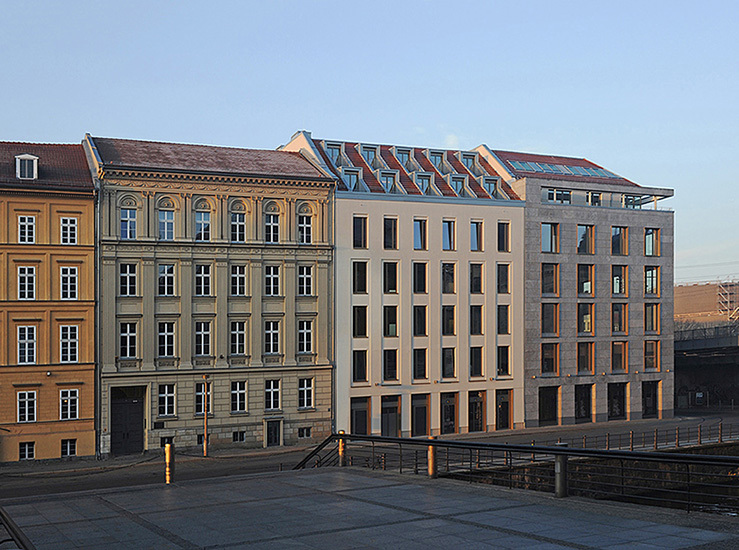 Mit dem Gebäudekomplex Am Kupfergraben Ecke Georgenstraße gegenüber der Berliner Museumsinsel wurde eine der letzten innerstädtischen Baulücken in prominenter Lage geschlossen.