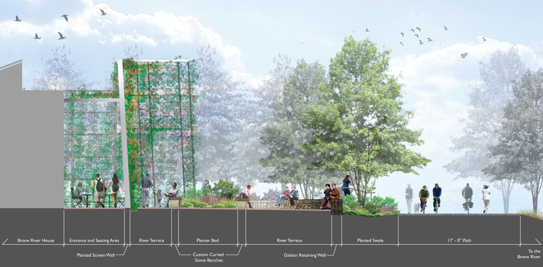 The Bronx River House received a 2008 design award from the Art Commission of the City of New York. It seeks LEED Platinum certification.