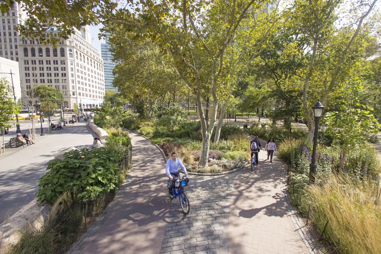 Starr Whitehouse’s work at The Battery is transforming a non-descript lot at the foot of New York City into a world-class urban park. In twenty years of Laura Starr and Jeffrey Poor’s involvement, the park’s program and design have evolved organically, building a new community of users in a neighborhood that is becoming more and more residential. From solitary paths through seaside gardens, to open-air kiosks and eating areas, to a state-of-the-art playground that promotes ecological awareness in children, to the new perimeter bikeway connecting the east and west sides of Manhattan, each phase has expanded the park’s functionality, ecology, and constituency. Today, the reconstructed Battery is a beloved urban space that draws millions of visitors annually—inviting tourists, office workers, and new residents to experience the natural abundance that made this small island at the mouth of the Hudson the gateway to the country beyond.