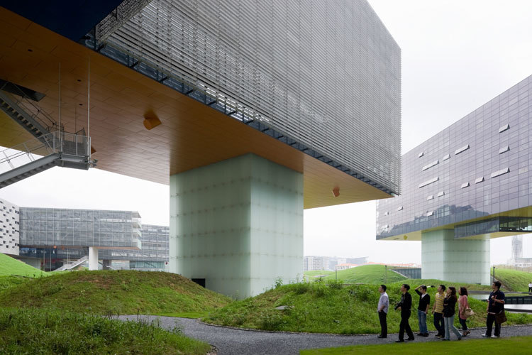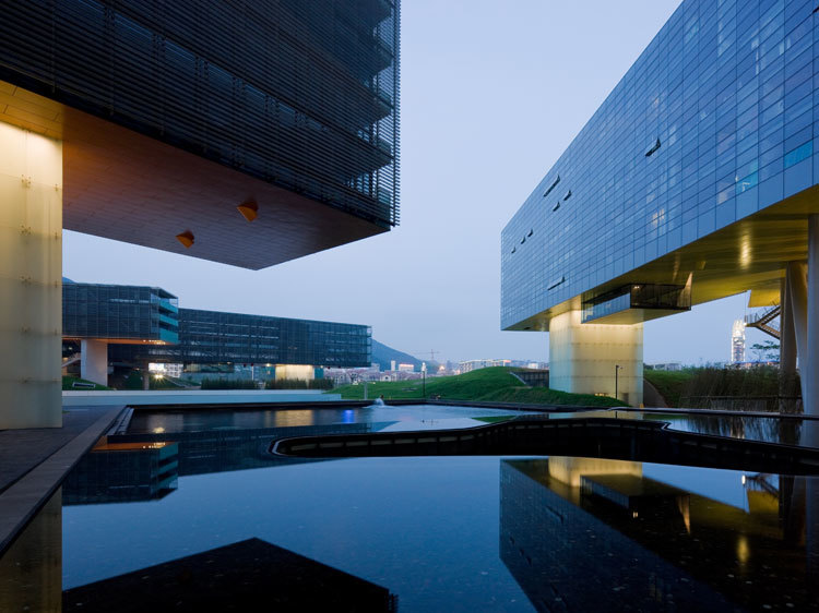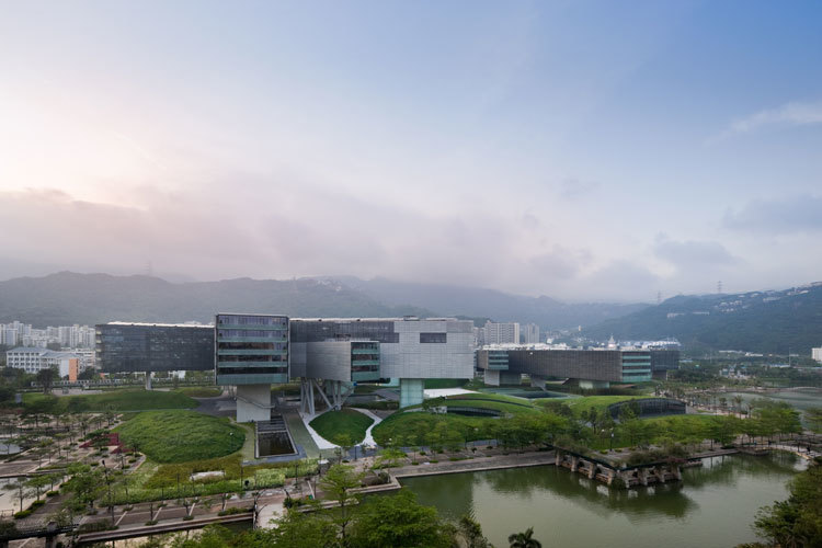 As a tropical, sustainable 21st century vision the building and the landscape integrate several new sustainable aspects. The Vanke Center is a tsunami-proof 21st century hovering architecture that creates a porous micro-climate of freed landscape and is one of the first LEED platinum rated buildings in Southern China.