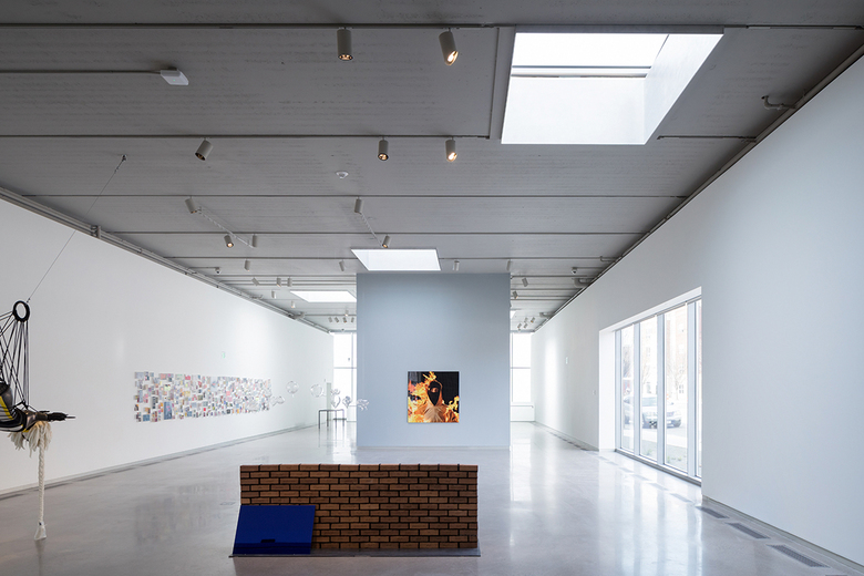 The 240-seat flexible performance space is fully equipped for film, theater, dance, and music performances. It connects the first floor with the second, where an overlook from the galleries provides an unexpected view between visual and performing arts.