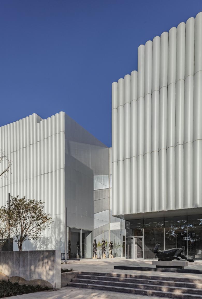 The new museum architecture of the Nancy and Rich Kinder Building is characterized by porosity, opening the ground floor at all elevations. Seven gardens slice the perimeter, marking points of entry and punctuating the elevations. The largest garden court, at the corner of Bissonnet and Main Street, marks a central entry point on the new campus. When standing in the great new entrance lobby of the Kinder Building, one can see gardens in four directions and feel the inviting energy of a new sense of openness to the community.