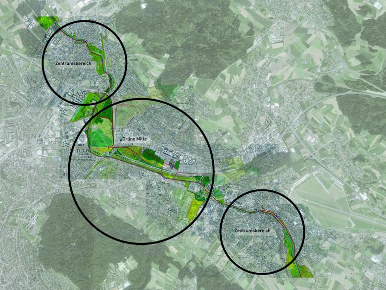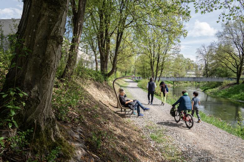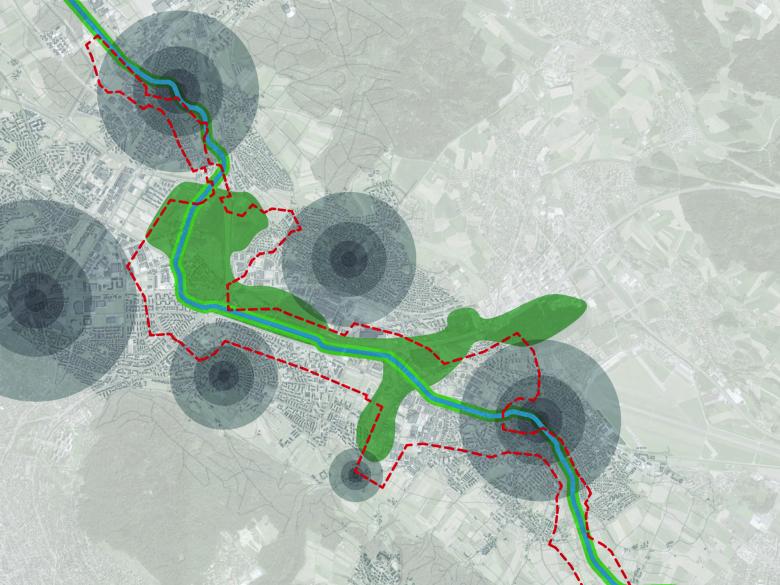 Vom eiszeitlichen Sumpfgebiet über ein Industriegewässer zum Stadtbach – die Geschichte der Glatt ist geprägt von sehr unterschiedlichen Bildern. Im heutigen Kontext einer wachsenden Siedlungsentwicklung steigt der Druck auf Raum für Erholung und Durchwegung. Dies steht im Widerspruch zu den Anforderungen des Natur- und Hochwasserschutzes. Das „Fil Bleu“ bildet das gemeinschaftliche Zielbild der angrenzenden Gemeinden sowie des Kantons für den Flussraum ab. Die zwei Uferseiten der Glatt werden ortsspezifisch unterschiedlich behandelt: Das linke Ufer wird durch den Glattweg aktiviert, die Glatt mit der Integration von Aufenthaltsmöglichkeiten erlebbar gemacht. Im Kontrast dagegen wird das rechte Ufer renaturiert und ist nur punktuell zugänglich.