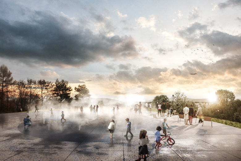 Das Entwurfskonzept bespielt die vier vertikalen Ebenen des Ortes: Himmel, Wald, Gletschermoräne und Topografie. Zwei Basisinterventionen bestimmen die subtile Umgestaltung des Parks. Waldlichtung: Ein Baumring umschliesst eine ovale Lichtung von 200 m Durchmesser. Berg und Plateau: Die Gletschermoräne ist eine abstrakte, topografische Landschaftsskulptur, die in der Himmelsplattform gipfelt, welche mit der Seilbahn vom Circle erreichbar ist. Der Park wird weiter inszeniert durch Elemente wie Waldloop, Skyloop, Waldpavillon, Skygazing Sessel und Wasserspiegel, welche den Hügel bespielen.