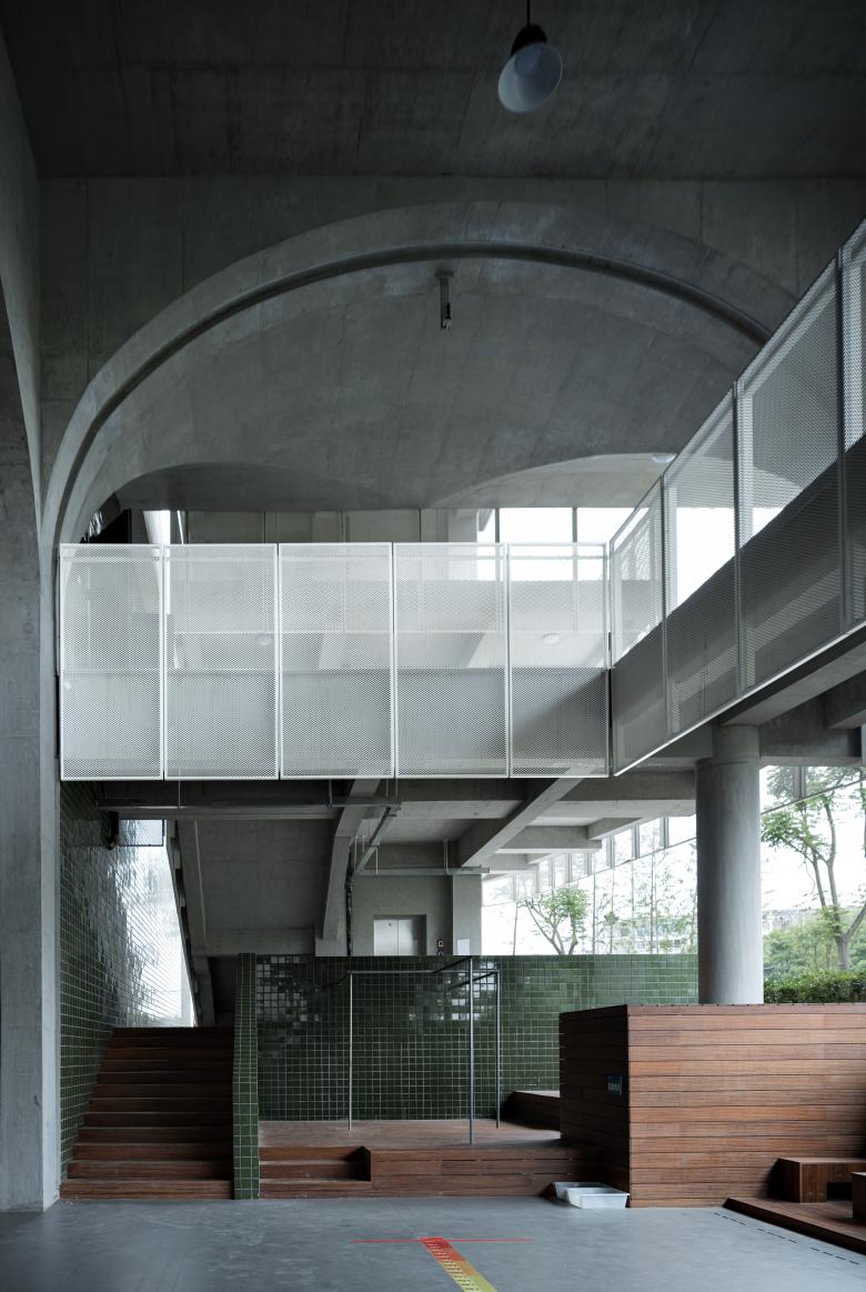 Owing to the form of the elevated space, the structure become the dominant element in the space, shaping the silhouette of building. We intuitively take the form of arches, making curved beams the motif of the building, and with various curved walls to form the appearance and partition of the building. Such flexible border makes the boundaries of the shared space more blurry, without barriers.