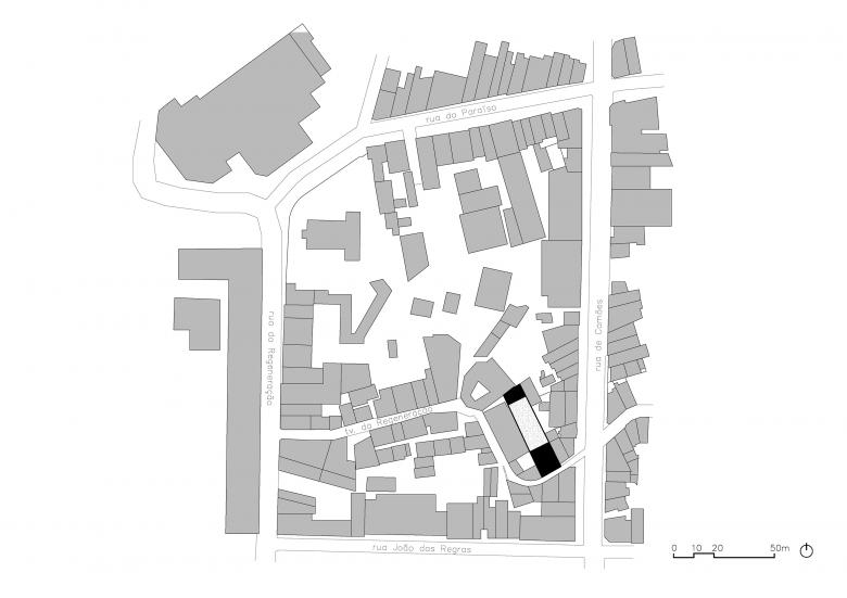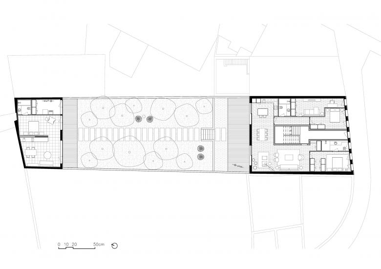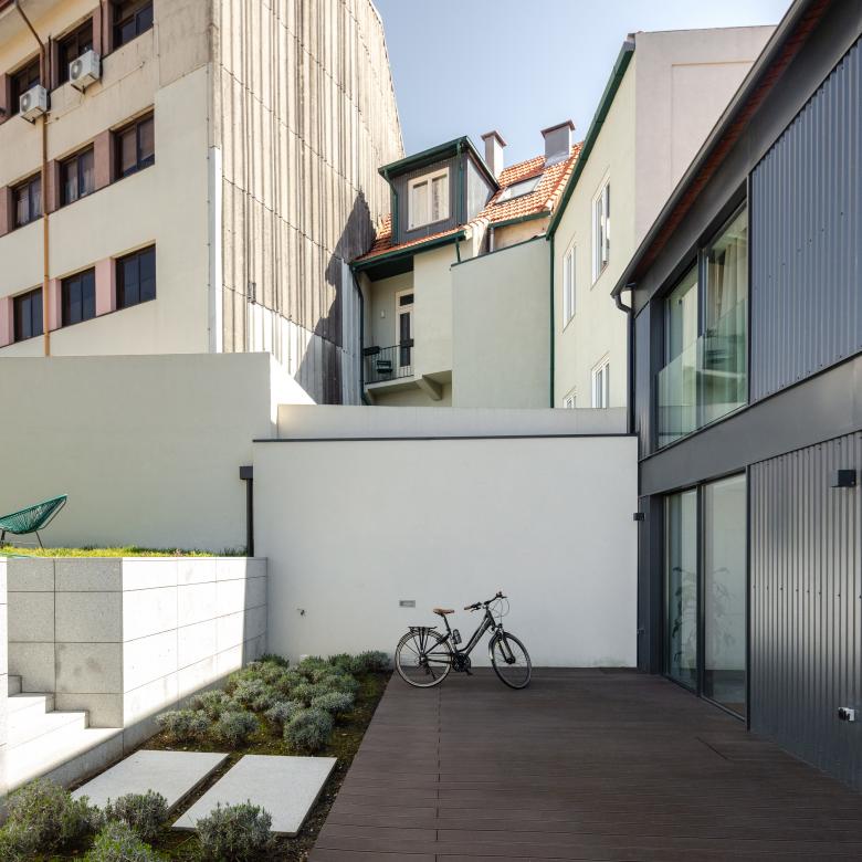The plot of this apartment is a classic example of narrow and deep plots in the city of Porto, in Portugal. The urban fabric of Porto's historic core is made up of plots measuring just 6 or 8 meters in front, set in very deep blocks. The result of this mesh is disproportionately long plots, which generate unusual green areas in the middle of the blocks, and apartments with a surprisingly generous private area. Such non-aedificandi areas are even more surprising given the location of several of them in the central area, mainly in the neighborhoods of Santo Ildefonso, Paranhos and Cedofeita.