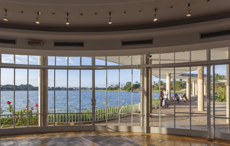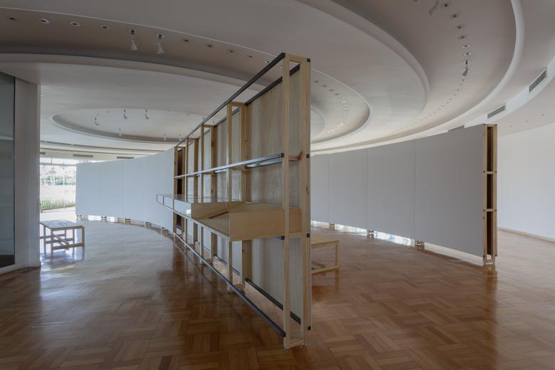 The exhibition design of the show “Marcel Gautherot: Modern records of the invention of Pampulha” seeks to be a response to the architecture of Casa do Baile (Oscar Niemeyer, 1943) and was conceived from this pre-existence, or from that modern architectural space.