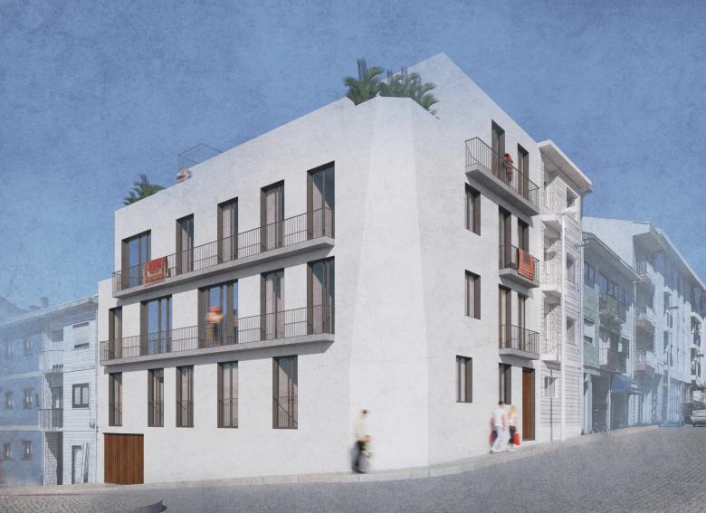 Both elevations are very sunny (west and south). The corner solution has a slightly sloping edge that gives the building its identity and a certain originality – although it is well integrated with the other buildings at the intersection of Rua da Aliança and Rua Monte Alegre.
