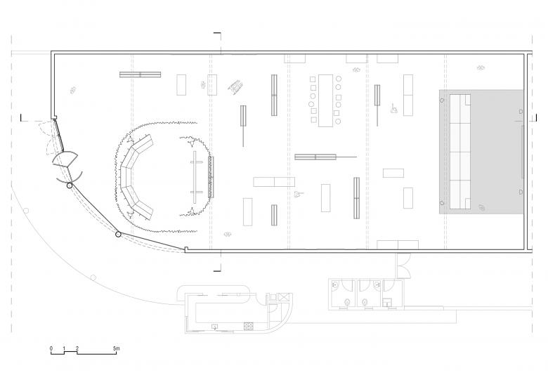 The expographic project seeks to translate the relationships between these different authors and uses theater architecture as a reference.