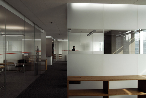 All the function programs are housed in the 8th Box made of more solid materials, such as concrete, bamboo, and steel. This function Box is located in the middle of the space to ensure the most convenient access for all the people working in different areas. The sophisticated industrial quality of such materials identifies the nature of the space as the Holcim Representative Office in Beijing, as well as establishing the esthetic balance of light with the transparent partitions in the other areas of the office.