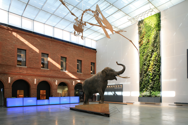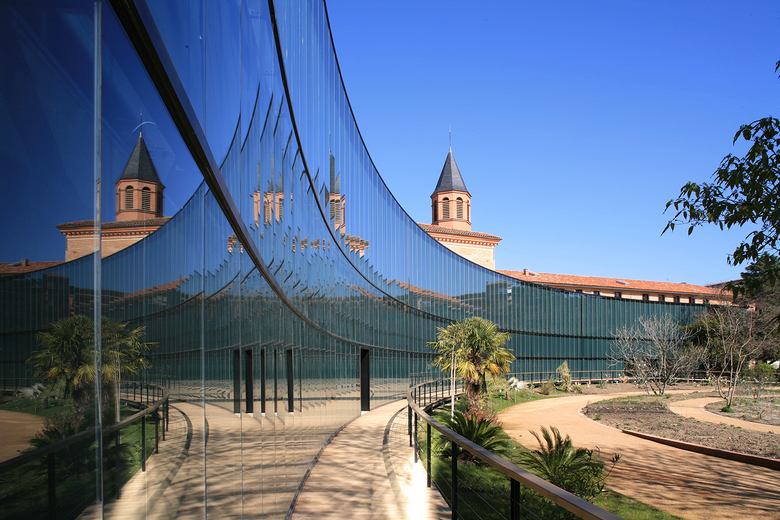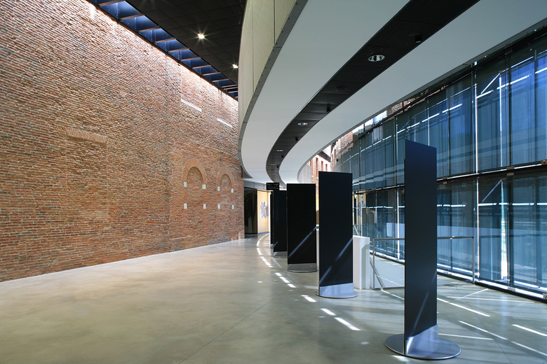 The old building is rehabilitated; the brick of its facade is restored and exposed. The animation and information centers are organized around the cloister and transformed into the atrium to be reused as a reception area.