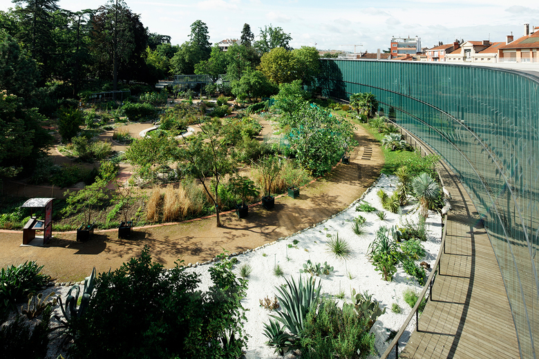 Just as the building of the museum is in continuity with the old one the botanical garden is inspired by the existing essences and ethos. Its shape follows the line of a conical spiral of 65 meters in diameter which is hollowed out over two meters towards a central stream. This geometry links all the components of the project, the interior with the exterior, the plant with the mineral, the exhibition spaces and the spaces of animation and ultimately the old and the modern.