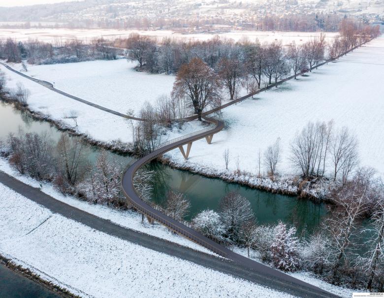 Der Schwarze Steg führt über den rechtseitigen Hintergraben des Linthkanals auf dem Gemeindegebiet der Gemeinde Schmerikon und verbindet die Wege Linthdamm und Linthweg. Die Firma Walter Bieler AG durfte eine Projektstudie durchführen.