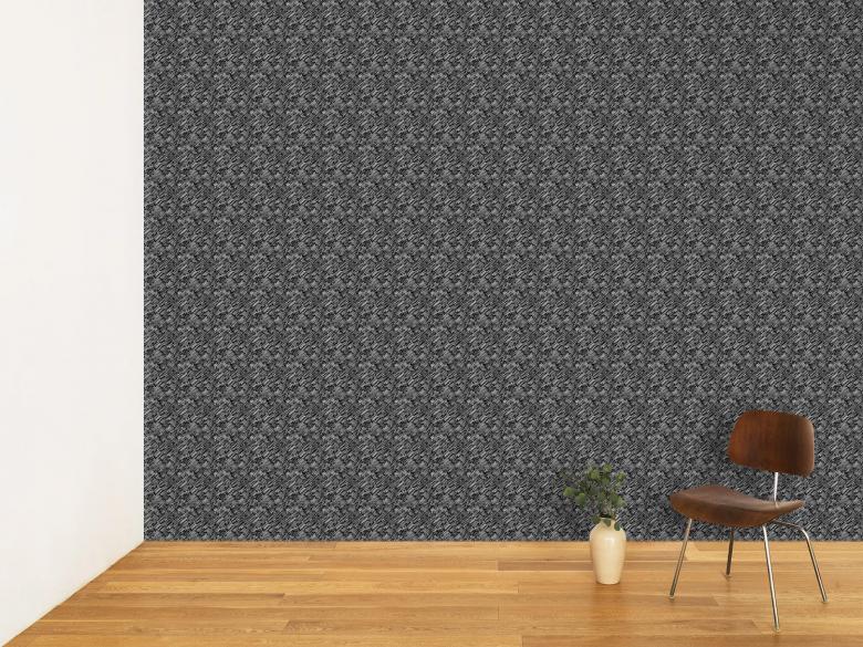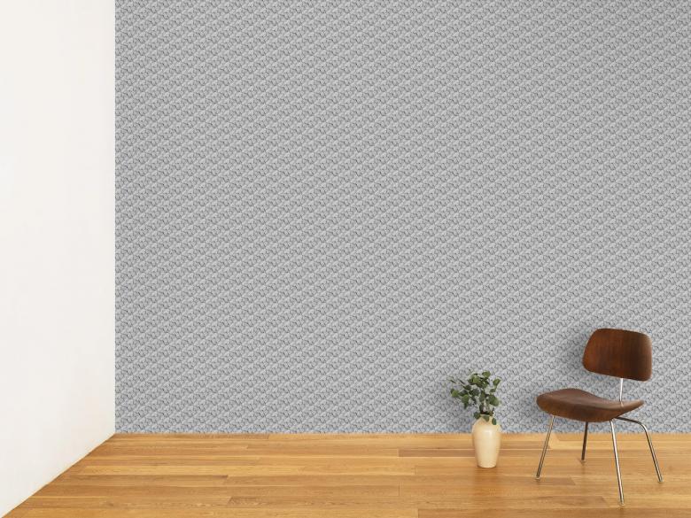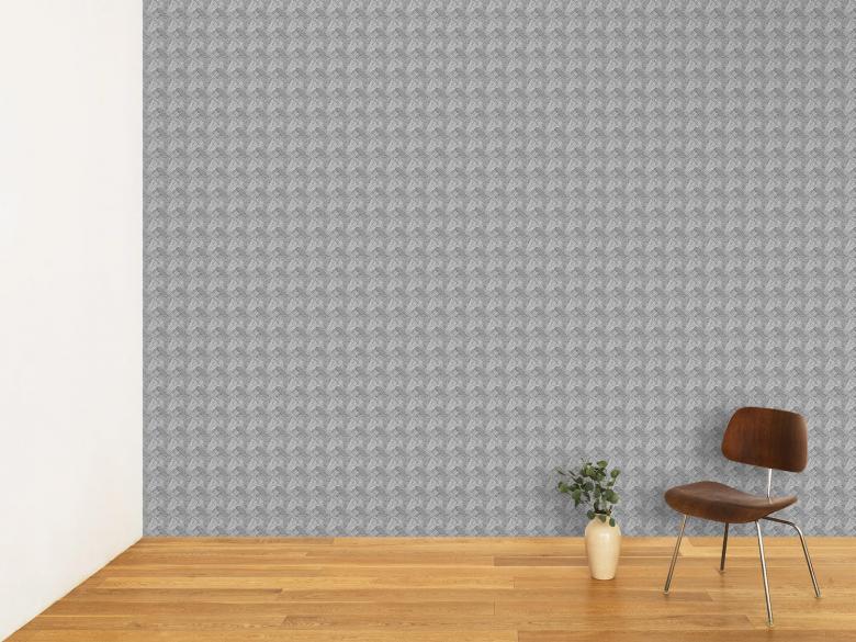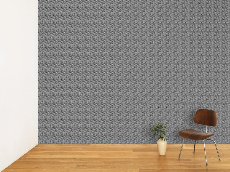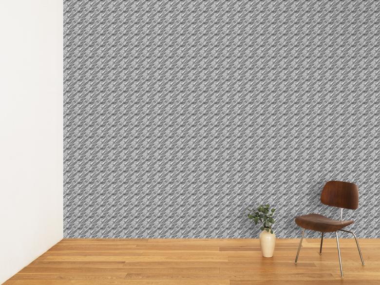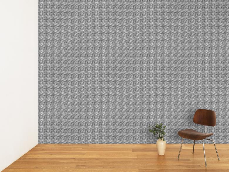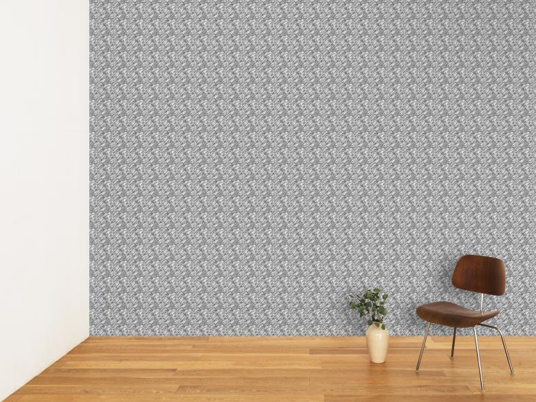 入念に設計されたドローイングは、「地」とも「図」ともつかない壁紙となり、空間に新しい知覚体験を作り出す。