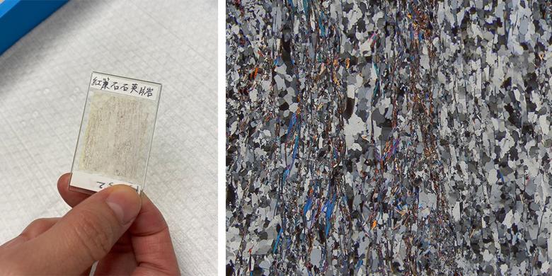 産総研の技術コンサルティングを活用し、地質標本館協力のもと岩石の顕微鏡写真を撮影。そこから壁紙のサイズまで700倍以上の大胆なスケールアップを行いました。古くは3億年前にできた岩から恐竜の生きていた時代の岩、現代は海底噴火によってできた新たな島の岩石まで。