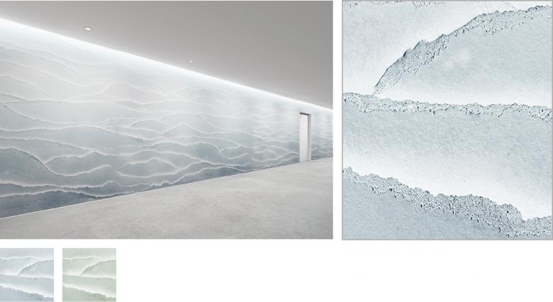 壁紙の素材として使われることが多い「紙」に敢えてスポットライトを当てた。“折る”、“破る”、“皺を伸ばす”など、さまざまな手を加えることによって、「紙」のもつ本来の美しさを改めて考え、デザインされた“Nature of Paper”。実験的なプロセスを経て、紙のあらゆる表情が『「壁」「紙」』として体現されたラインナップとなった。