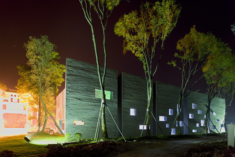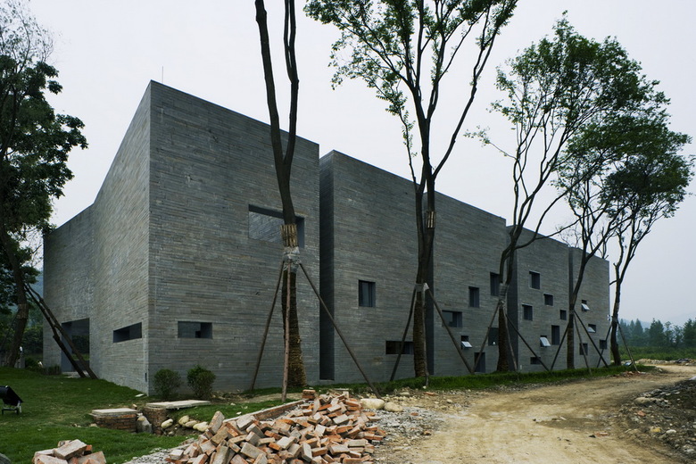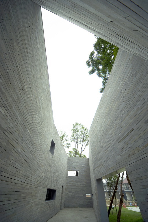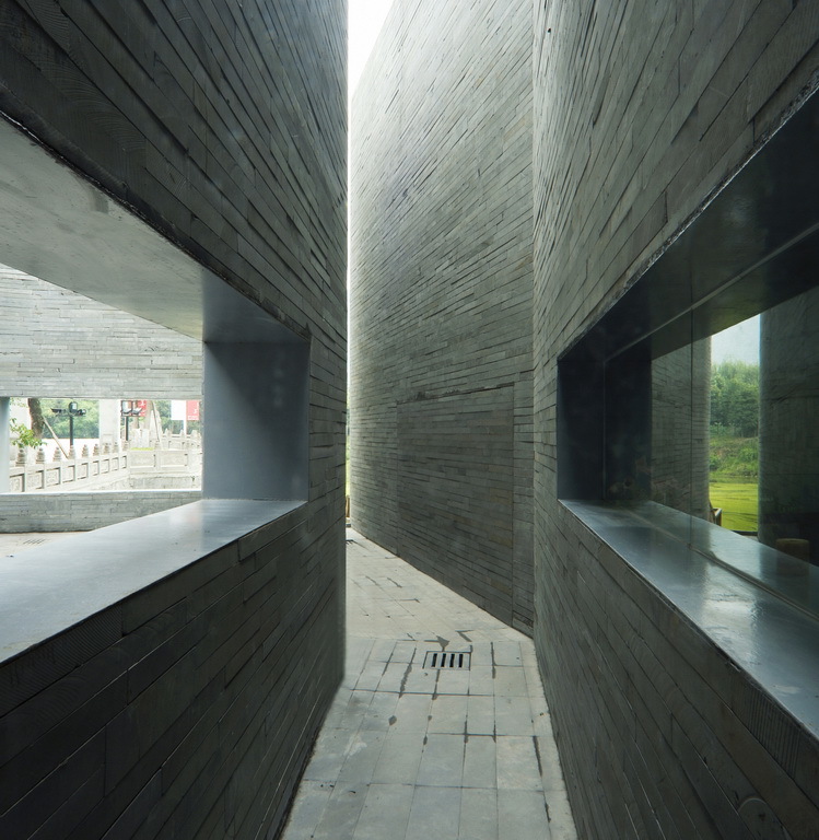 The stone wall is built exclusively of a type of local slate, which will be cover by green moose in a few years after exposed in the rainy and humid weather of Chnegdu.