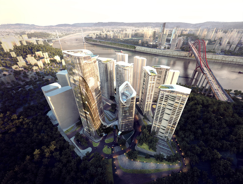 This project forms the second phase of a large-scale 680,000 sqm GFA mixed use development located on a prime 40,000 sqm waterfront site in the Jiangbei central business district of Chongqing, China. The development will be a mix of Grade A commercial offices, a 200 rooms boutique hotel, amenity, retail, serviced apartments, and residential towers that will enhance and support the first phase of the masterplan, as well as, the growing local community.