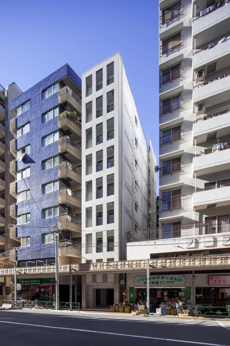 東京都文京区小石川、千川通に面した間口約5mの敷地に建つ集合住宅である。もともと同じような間口の低層建物が立ち並ぶ商店街だったのが、徐々に大規模マンションに立ち替わっていっている地域の中で、取り残されたように、長い間空き地だった小さな敷地である。