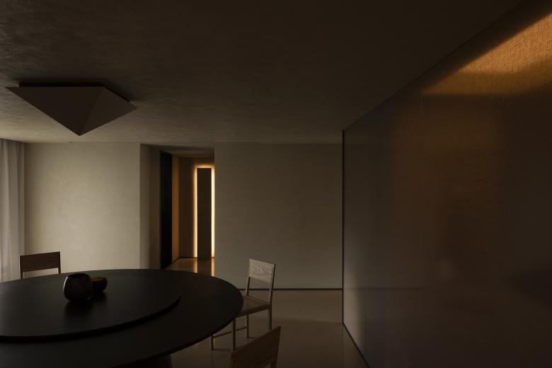 Here, objects encounter light in a subtle way. Light and objects are mutually dependent, both of which are neither independent systems nor opposites. Although its form cannot be altered by functions, the space plays the role of light maker. The light plays with objects, thereby triggering some fresh spatial emotions.