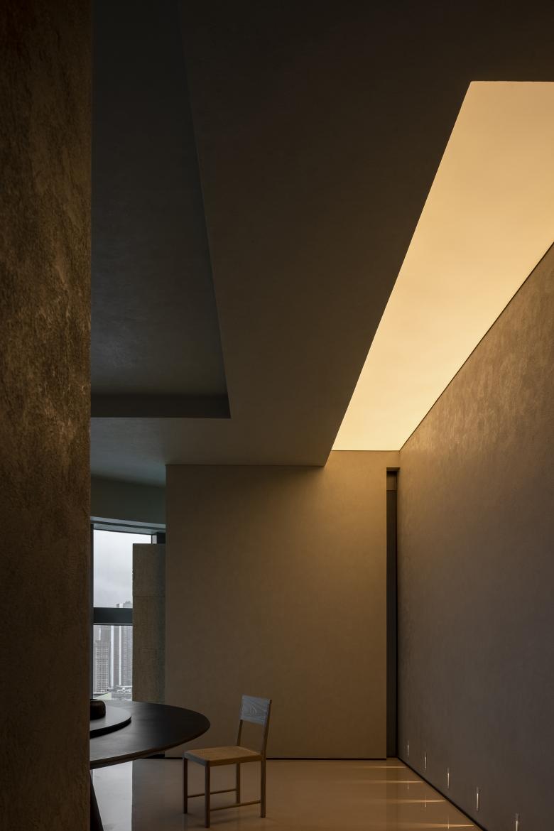 "We are creating some visible illusions, including conflict between the falling and the floating, dialogue between roughness and smoothness, coexistence of freedom and order, and asymmetrical symmetry. Through these illusions, emotion and rationality complement each other in the space. What AD ARCHITECTURE seeks is a kind of quietness in the bustling city, as well as harmony between opposites."