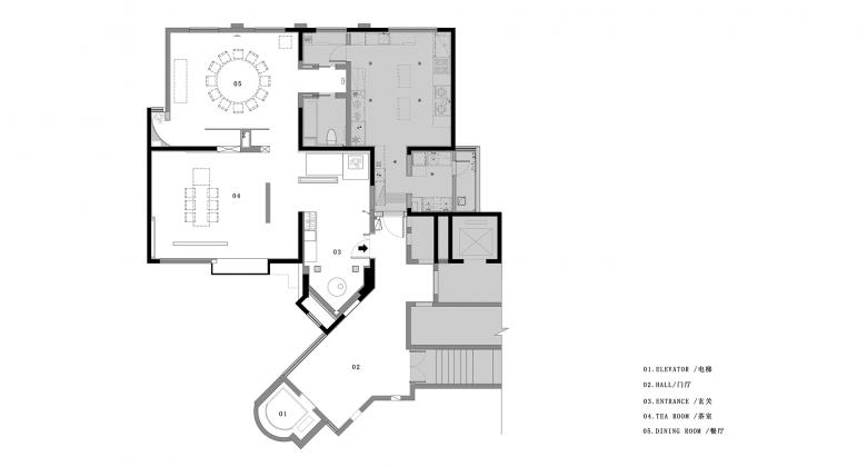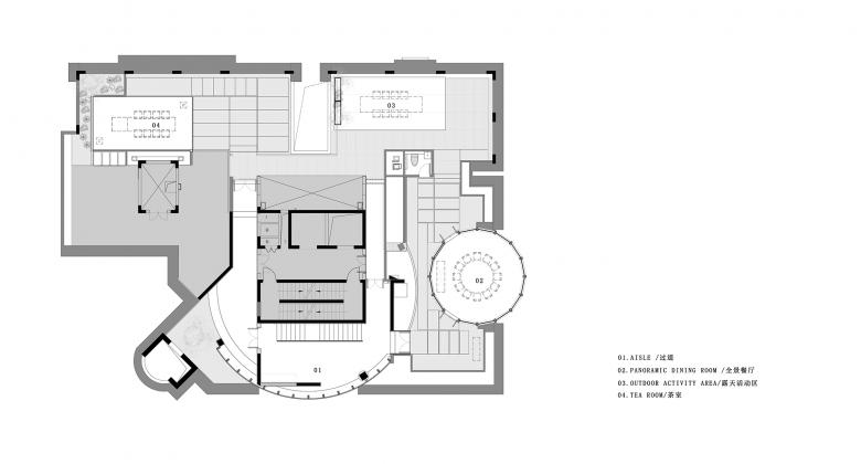 Three private rooms vertically connect three floors, effectively achieving an optimal balance between spatial privacy and independence. Explicitness is a common feature of contemporary reception spaces, expressing a yearning for higher spatial quality. It was a key point taken into account at the preliminary design stage.