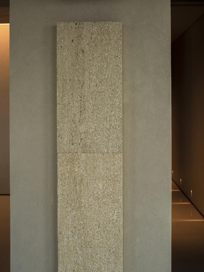 Main materials: stone, wooden flooring, handmade paint, wooden veneer