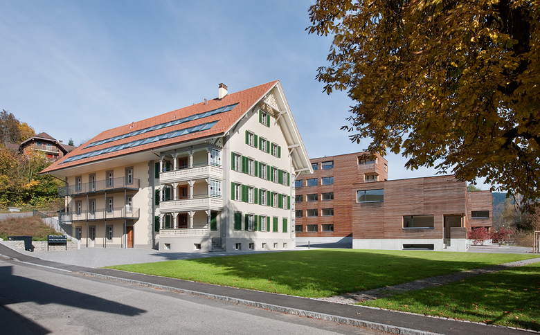 Die Dorfstruktur von Herbligen ist durch ein System von landwirtschaftlichen Gebäudegruppen mit unterschiedlich grossen Volumen charakterisiert. Die so entstandenen Höfe bilden die Aussenräume und Zugangsbereiche der einzelnen Gebäude. Das Mühleareal zeichnet sich einerseits durch den Bach „Chise“ als Beginn der Ebene im Süden und andererseits durch einen präsenten Nordhang aus. Mit den Neubauten wird das System der Gebäudegruppen im Mühleareal weitergeführt und neu interpretiert, wobei darauf geachtet wurde, dass das bestehende Mühlegebäude sowie die ans Areal grenzende Mehrzweckhalle in die Komposition integriert werden. Die Gebäude wurden bewusst vor die Hangkante gestellt, damit diese sichtbar bleibt und der Bezug zur „Chise“ weiterhin erkennbar ist.