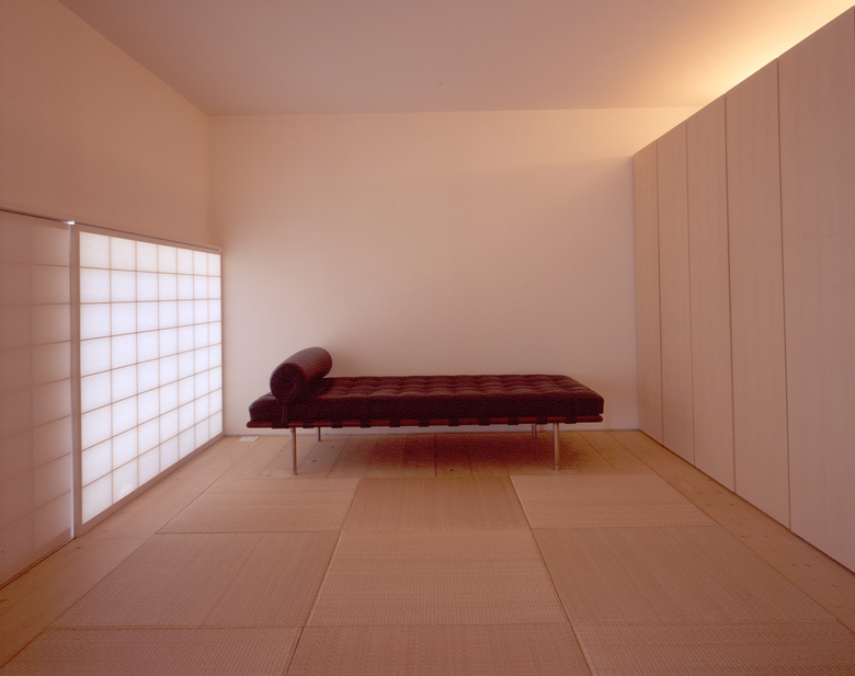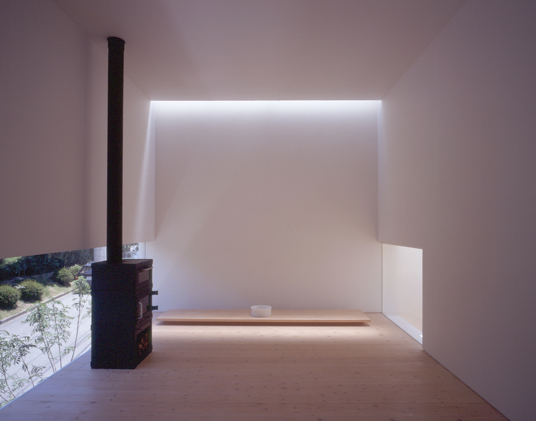 内を構成する空間には、開口部から差し込む光の表情によって様々な気配がつくりだされる。トップライトからの鋭い光。天空から降り注ぐ柔らかい光。白い壁に広がる優しい光。光の表情は、自然の気配と時の経過を伝える。室は、光によって独自の性格を持った空間となる。単純な平面および断面のつくり出す空間が、多様な性格の室を構成していく。 各々の室は、室名を持たない。建物全体、そして全ての室が、そこで集う人々の全ての行為を包み込む。人々は時を感じ、気を感じ、その時々で様々な場をつくり出す。光、時、人々はうつろいゆく気配を室に映しこむ。