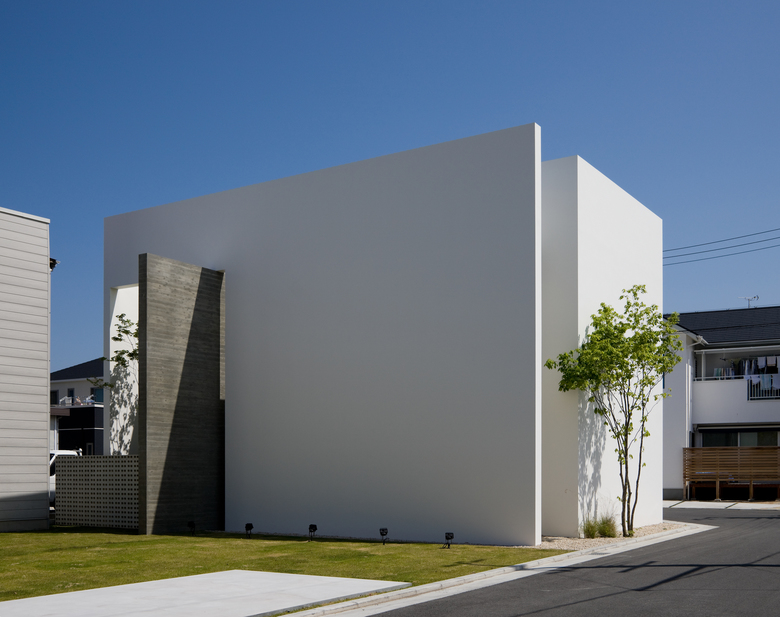 オフィスという機能上、周囲に対して閉じた構成をとる一方で、幹線道路に面した敷地の南側を、芝生の広場として地域に広く開放している。 キューブと一枚の壁に挟まれたエントランスでは、奥にある坪庭に落ちる柔らかな光が人々を迎え入れる。扉を開き、室内に一歩足を踏み入れると、そこは大きく吹き抜けた空間となっている。