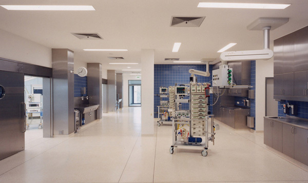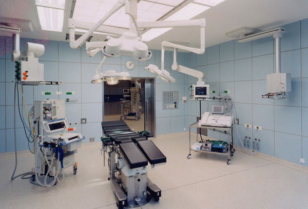 Im Neubau wurden die Op's, die Intensivpflege, die Stationen für Herz- und Gefäßchirurgie, Zentralsterilisation, Laboratoriumsmedizin, Physikalische Therapie sowie die Patientenaufnahme untergebracht.
