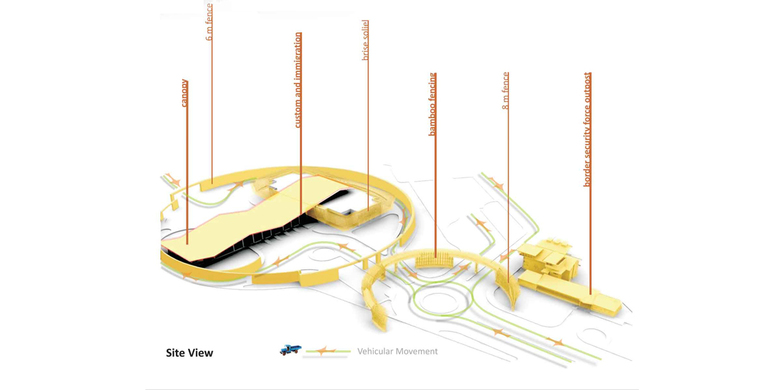 The Land Custom Station (LCS) at the India-Bangladesh Border at Agartala is a large facility providing transit, customs and immigration and cargo handling services for goods and passengers traveling between Bangladesh and Northeast India. The central architectural concept for the proposed LCS centers on the idea of the “Portal”. The LCS is truly the Gateway for entering or leaving Indian Territory. The design intends to convey this concept very strongly.