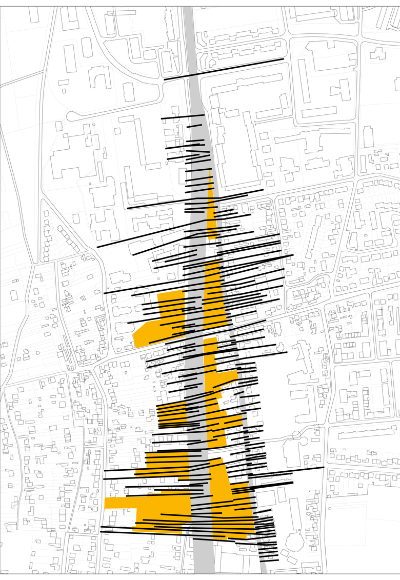 These three elements are required to create an operational principle of urban connection, focusing on the urban scar of the national road as an opportunity for uniting the city. Re-converting the RD5 into an urban boulevard allows us to introduce the concept of ductile public space, closely related with the concept of shared private space (SPS).