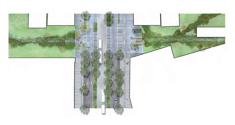 The RD5 loses its front-line strength and allows the creation of a public space which can be used by all the inhabitants of Vitry, thus enhancing social cohesion as well.