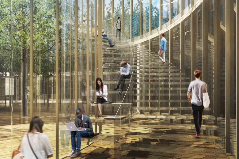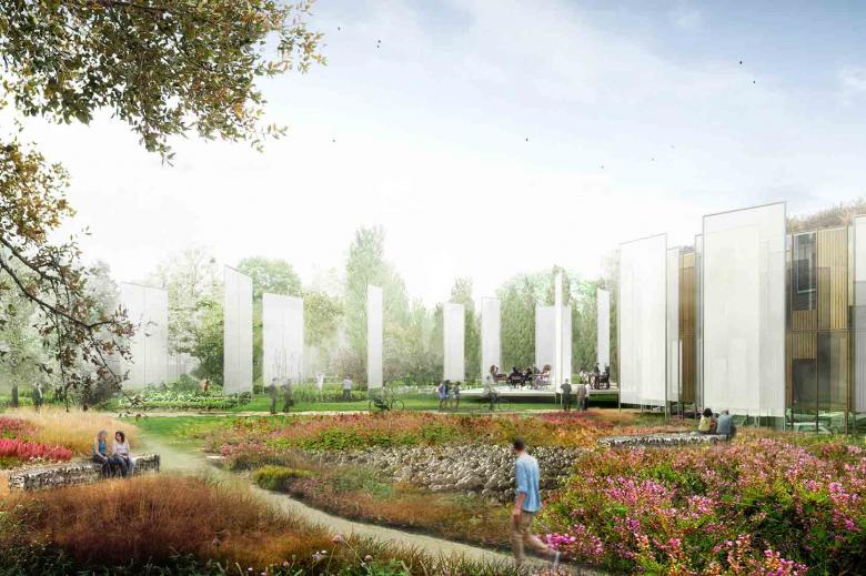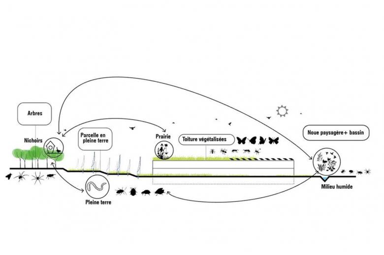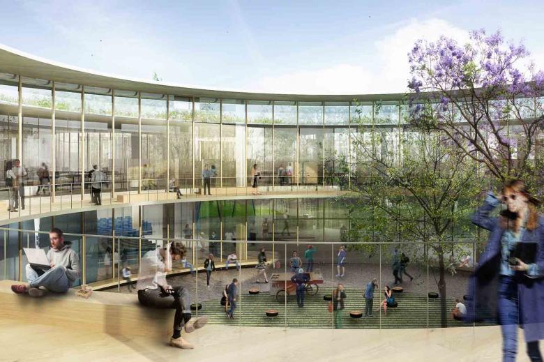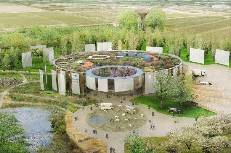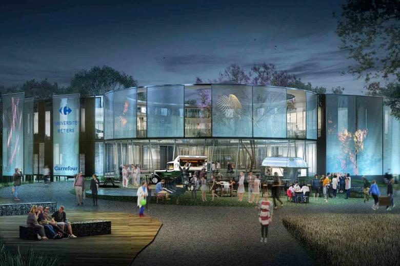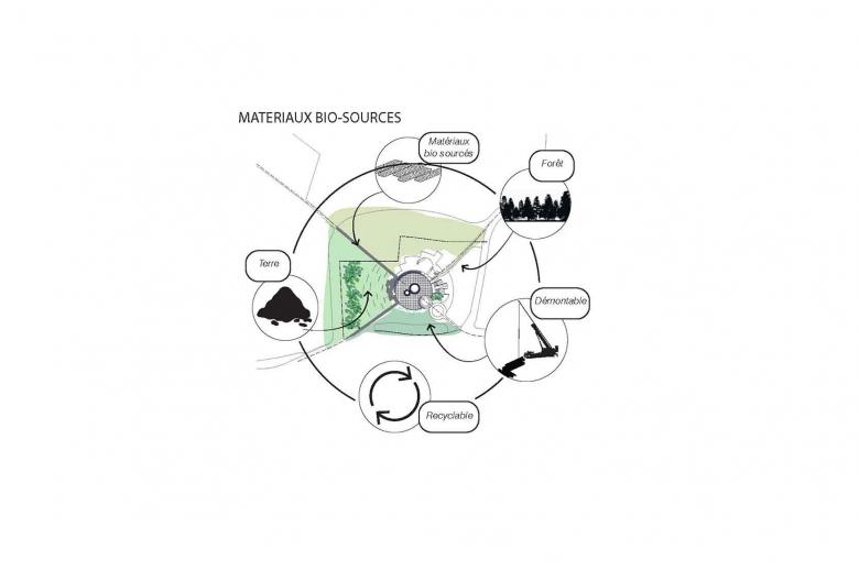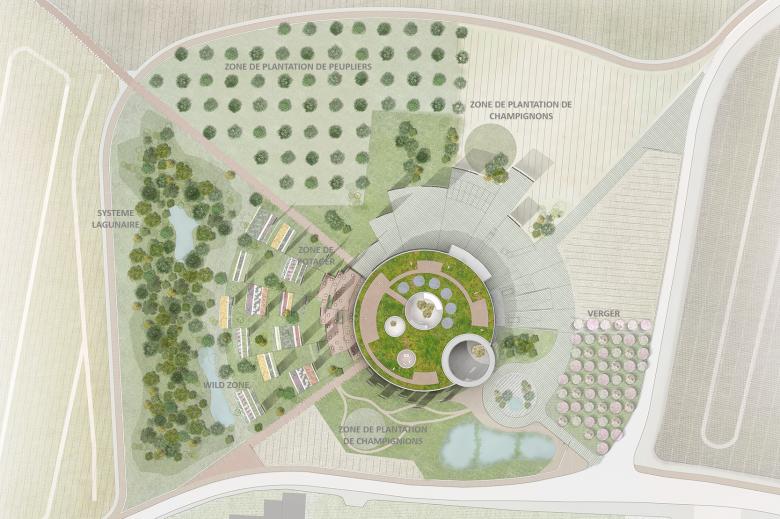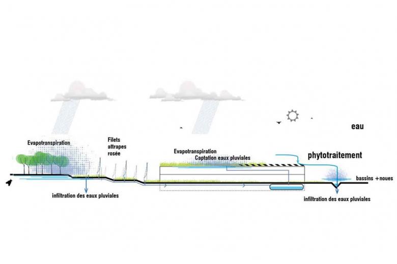 In the heart of the plain of Saclay, characterized by its strong agricultural tone and bathed in morning mists that portray a scenic poetry, the building of the Université des Métiers stands as a natural organism enriching the landscape. Integrated to the territory in a discreet and sober, yet radical way, the project addresses the theme of the Water Cycle through the use of the “cloud catcher”.