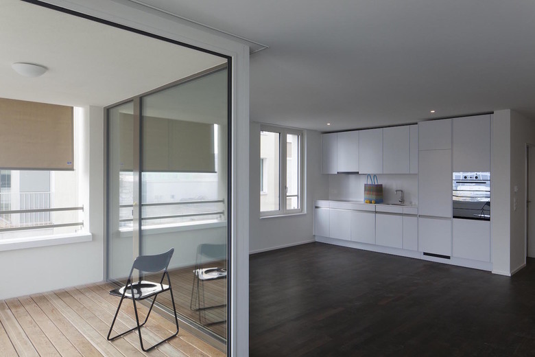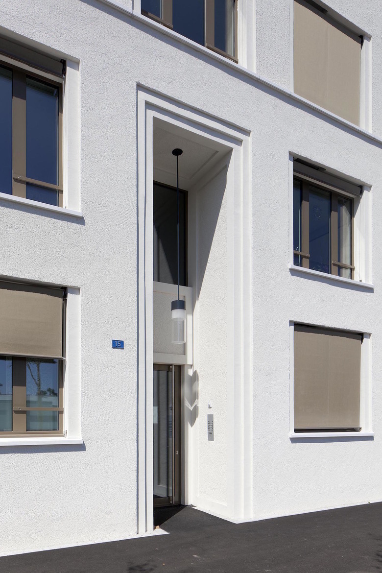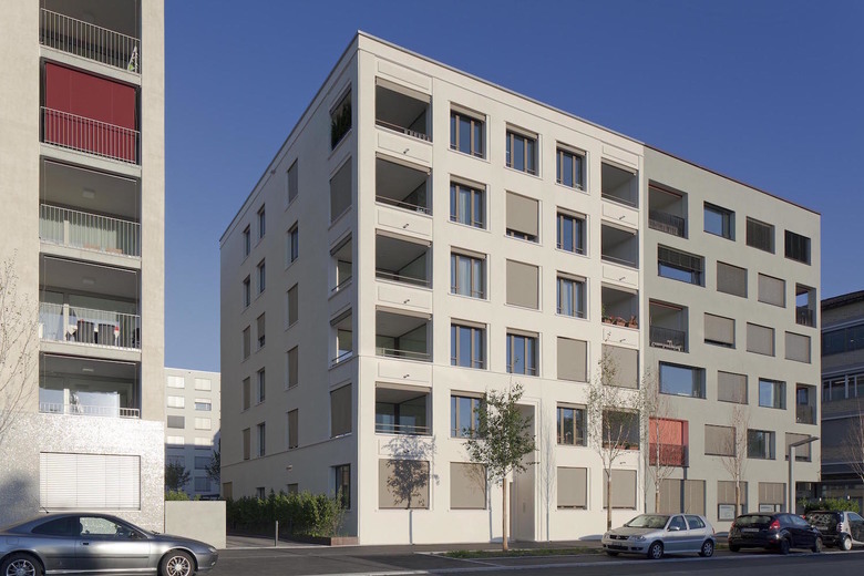 Der Entwurf orientiert sich an lokalen Gebäuden, die in der Zürcher Metropolitanregion anzutreffen sind. Elemente dieser Referenzen werden für die anstehende Bauaufgabe nutzbar gemacht. Der gedrungenen Fassadenproportion des Baukörpers wird mit der Betonung der Vertikalen begegnet. Klare Linien gliedern den Baukörper in drei schlanke Bauteile und geben ihm eine aufstrebende Dynamik. Die Wohnungsgrundrisse des Mehrfamilienhauses sind vielseitig nutzbar. Das Haus ist rein mineralisch konstruiert. Alle vertikalen Elemente sind gemauert, die Fassade ist mit einer druckfesten Kalk-Sand-Zementdämmung eingekleidet. Verschiedene Putzoberflächen unterstützen die Gliederung in der Fassade.