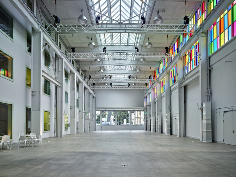 Das Trafo Projekt in Baden entstand mit der Umgestaltung des ehemaligen und unter Schutz stehenden ABB- Industiehallen. Mit Hilfe eines Wettbewerbes entwickelten die verantwortlichen Planer ein Gesamtprojekt mit Wohnungen, Hotel und Eventhallen. Den gewaltigen Dimensionen der Halle wird mit einer zweigeschossigen, neun Meter hohen Lobby als Auftakt des Hotels Rechnung getragen. Sie bildet das Zentrum des neuen Hauses und schafft Orientierung. 45 der insgesamt 81 Hotelzimmer haben direkten Blick in die 14 Meter hohe Industriehalle und so einen engen Bezug zu diesem gedeckten Stadtplatz. Als Besonderheit eröffnet sich aus den Einzelzimmern auch die Sicht auf 660 bunte Glasfenster des Künstlers Ugo Rondinone, die in die Fassade eingearbeitet wurde und den vorgegebenen Look des Industrial Design zeitgemäss auflockert.
