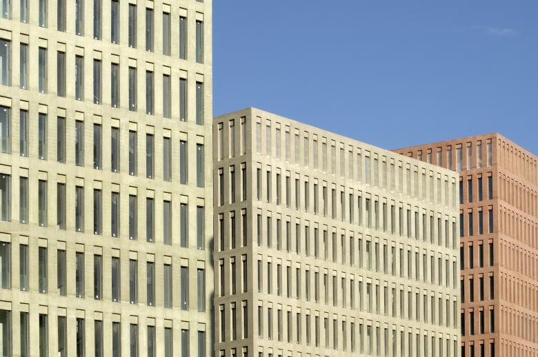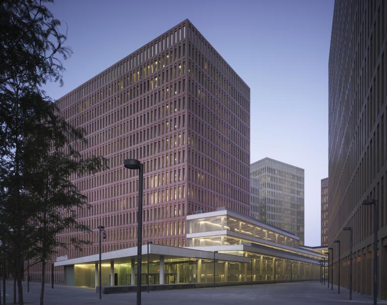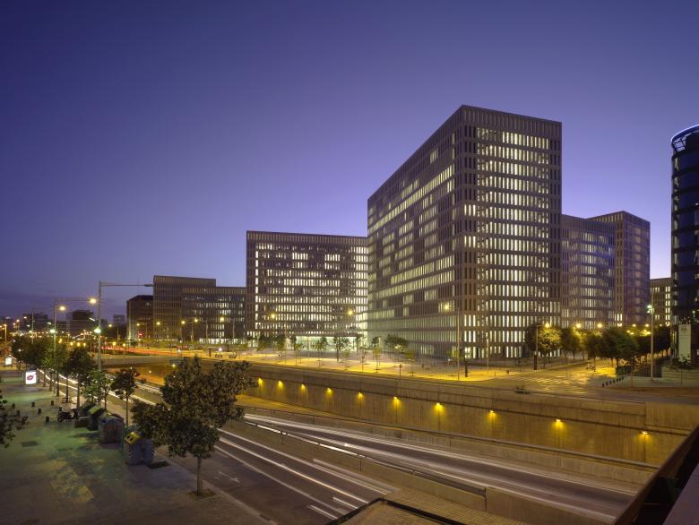 The project centralizes most of the justice departments of Barcelona and L’Hospitalet de Llobregat,The most significant proposal of the project is to fragment an ambitious program in a series of separate but interconnected buildings. The buildings are grid blocks, with bearing walls of reinforced and colored concrete, each with a different color. The atrium is the main public space of the complex and acts as a street filter for distribution and access to court premises.