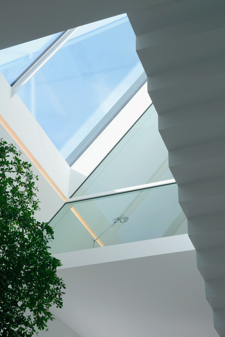 Ein großes Dachoberlicht über dem 3-geschossigen Luftraum, in dem ein Baum wächst, sorgt für eine optimale Belichtung des Hauses.