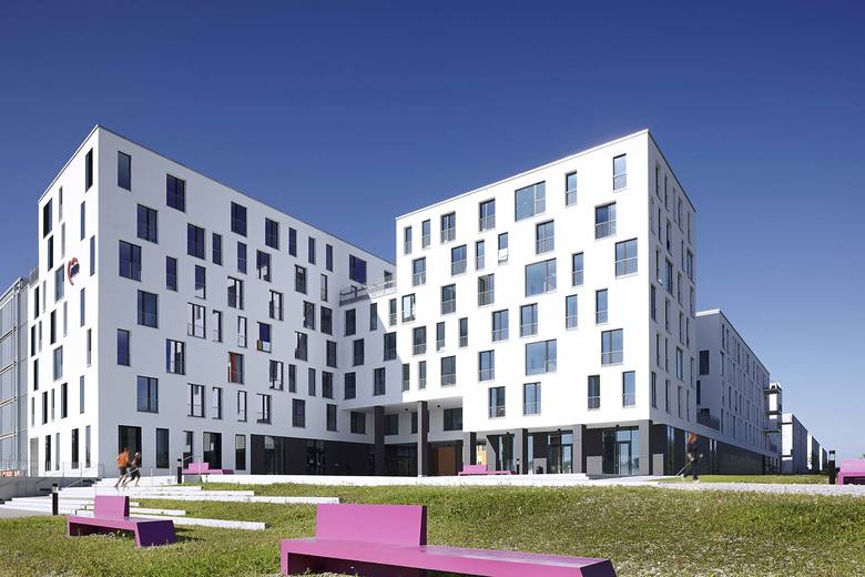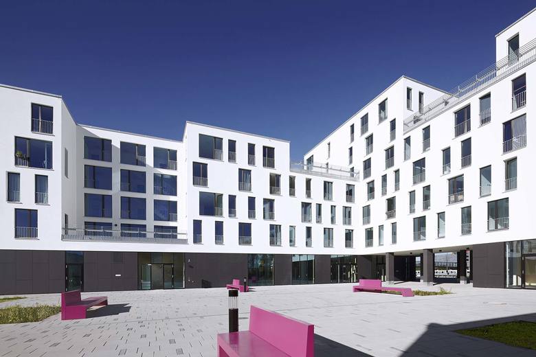 Studentisches Wohnen, Familien-Appartements für Studenten, Betreutes Wohnen, Verwaltung, Cafe, Copyshop und Gastronomie