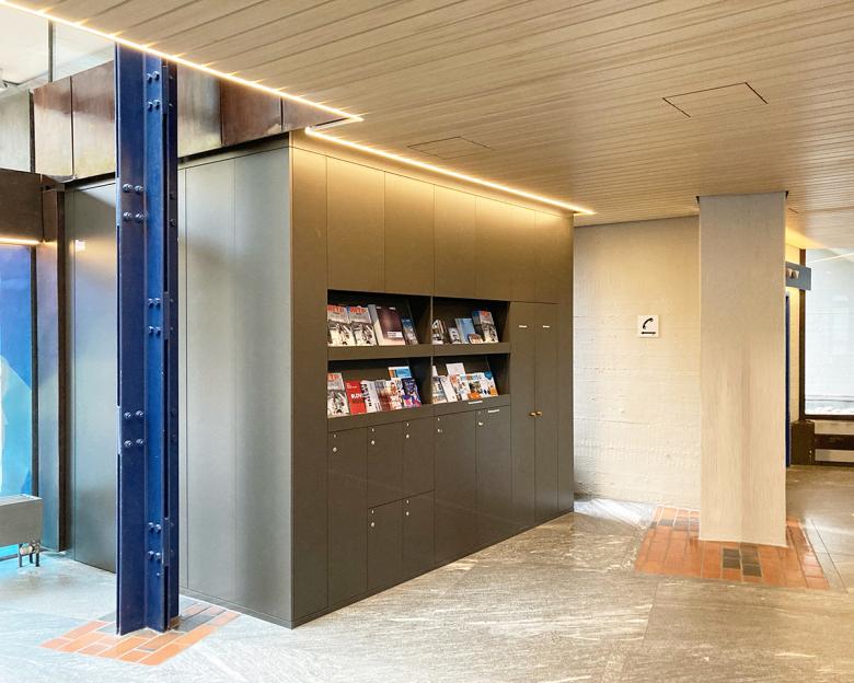 Repräsentative und zeitgemäße Anmutung der Empfangsmöblierung für ein modernes Medienunternehmen unter Berücksichtigung der Denkmalschutzbelange
